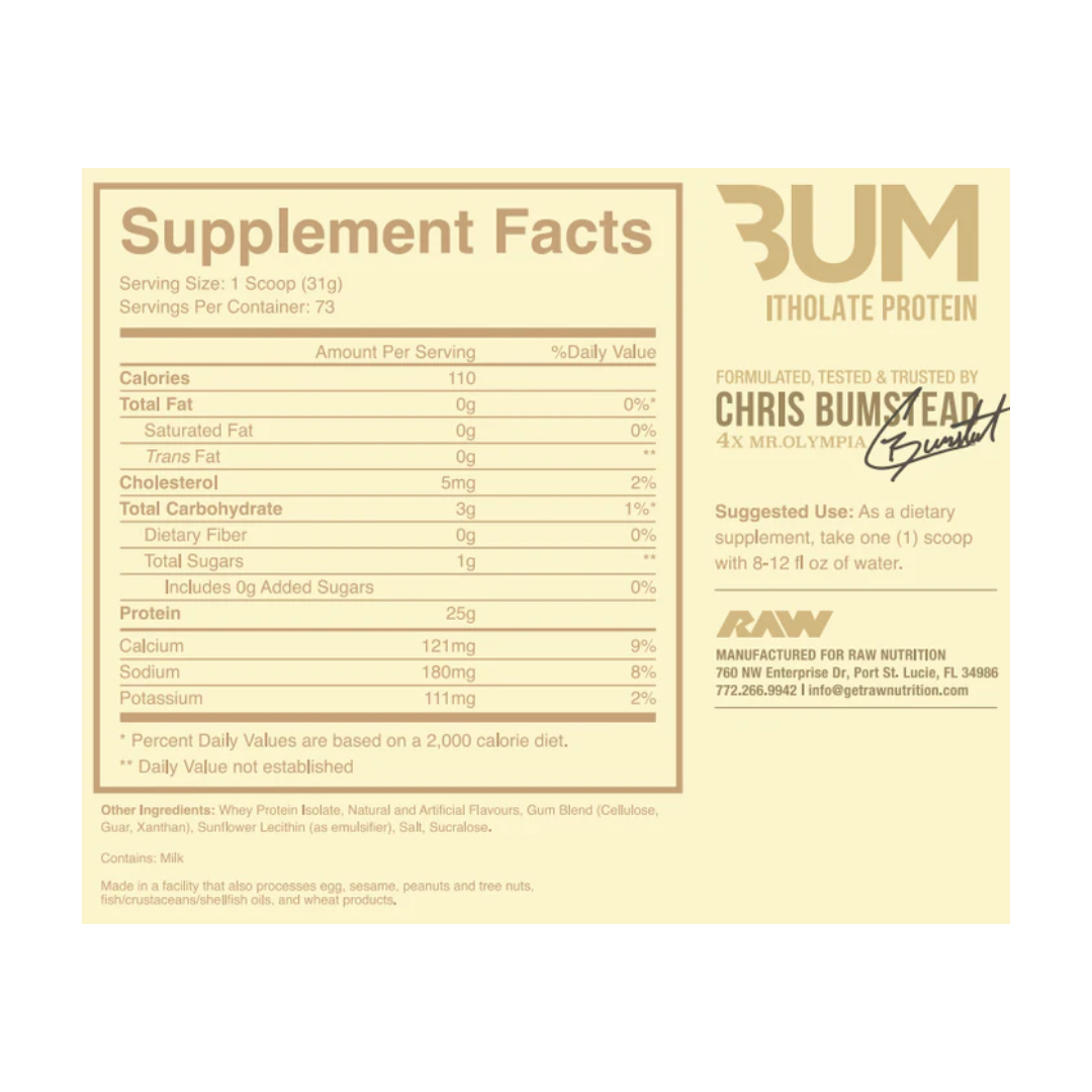 BUM Itholate Protein sabor chocolate es una proteína aislada de alta pureza diseñada para quienes buscan mejorar su recuperación y mantener una masa muscular limpia. Su fórmula ligera y de fácil digestión aporta aminoácidos esenciales y BCAA que favorecen el desarrollo muscular y el rendimiento físico,