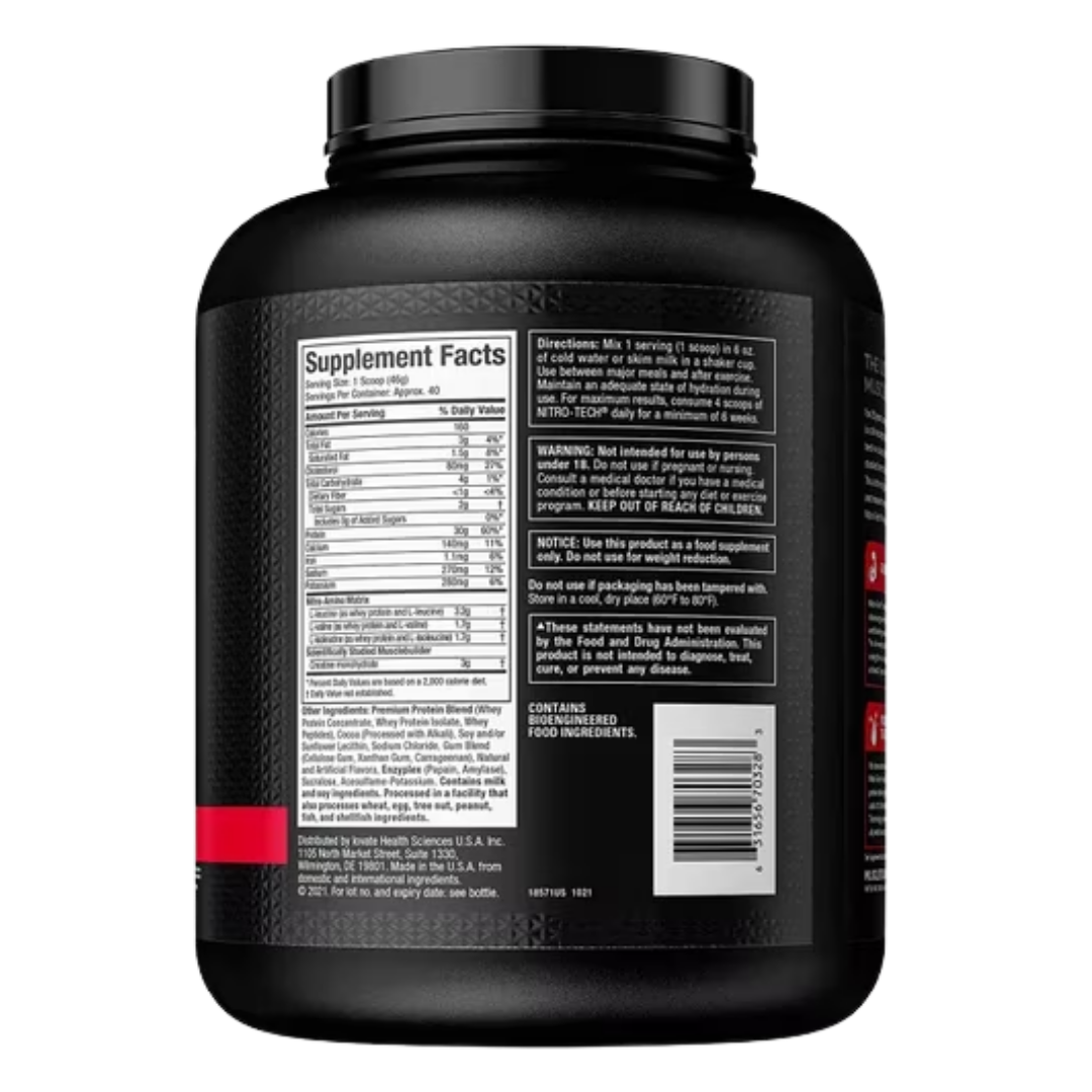 Nitro Tech Whey Protein sabor fresa es una proteína de suero avanzada diseñada para apoyar el crecimiento muscular, la fuerza y una mejor recuperación después del entrenamiento. Su fórmula combina proteína de alta calidad con aminoácidos esenciales que ayudan a desarrollar masa muscular magra y reducir el desgaste físico.