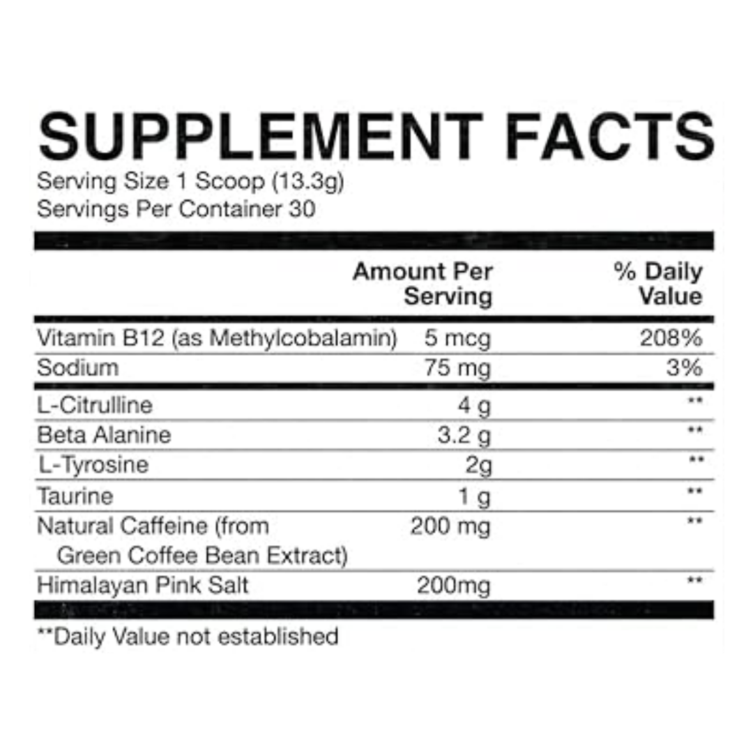 Pre-entrenamiento formulado para aumentar la energía, el enfoque y el rendimiento físico. Ideal para entrenamientos intensos, ayudándote a sacar el máximo provecho de cada sesión (30 servicios)